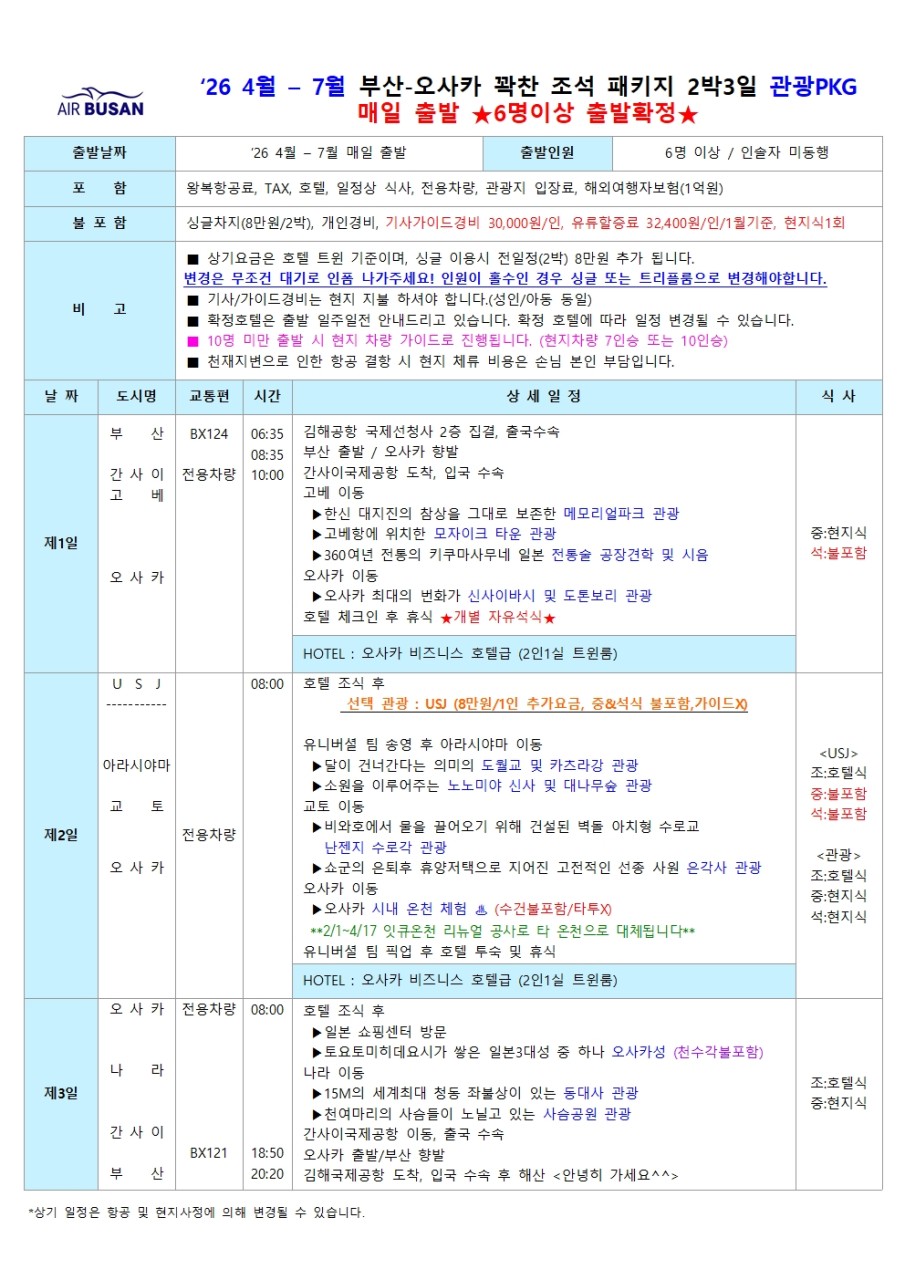 | 여행기간 | 2026년 04월 24일 (금) ~ 2026년 04월 26일 (일) 2박 3일 |