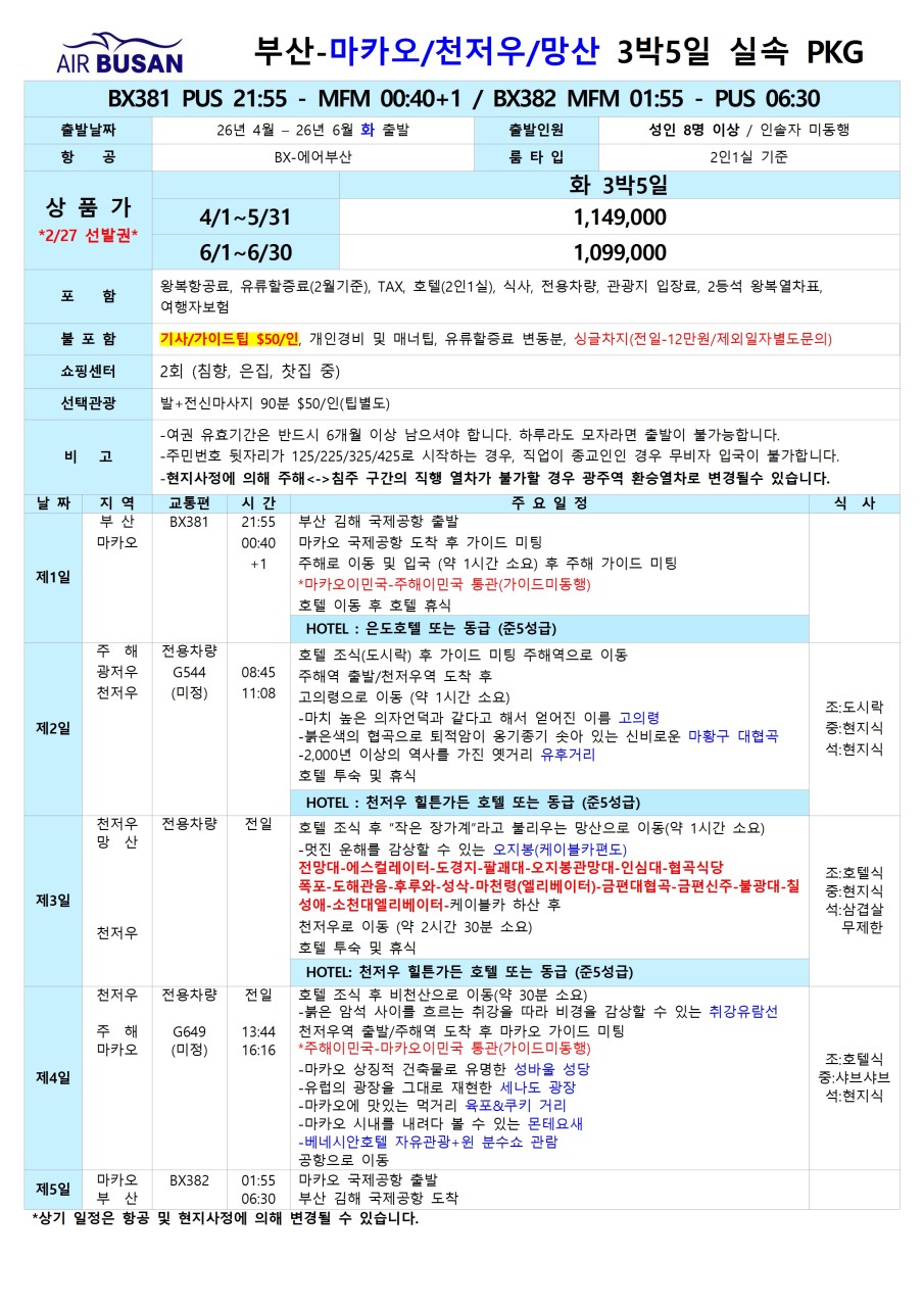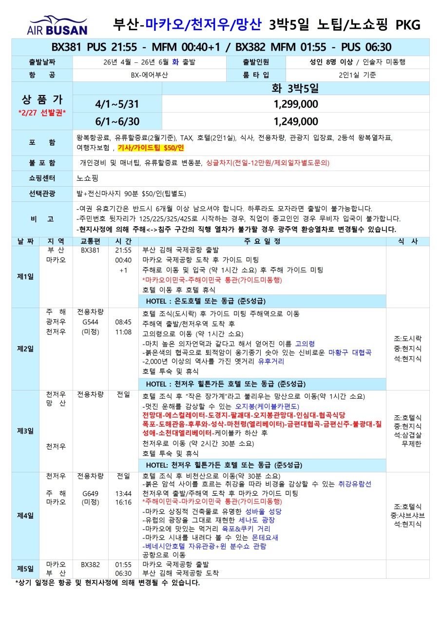 | 여행기간 | 2026년 04월 28일 (화) ~ 2026년 05월 02일 (토) 3박 5일 |