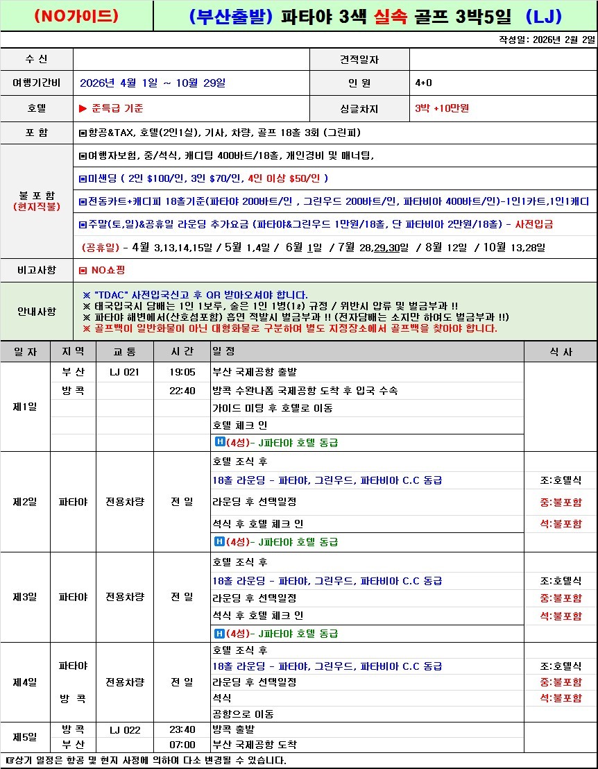 | 여행기간 | 2026년 04월 29일 (수) ~ 2026년 05월 03일 (일) 3박 5일 |