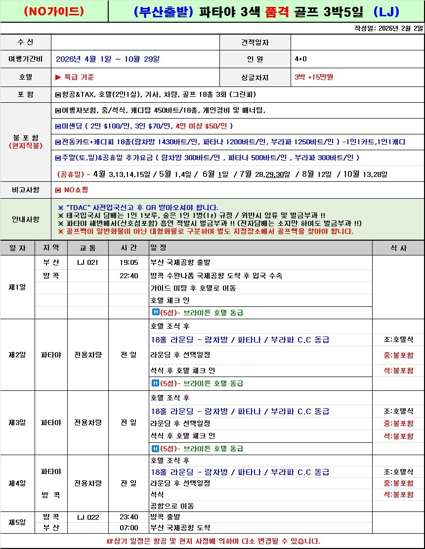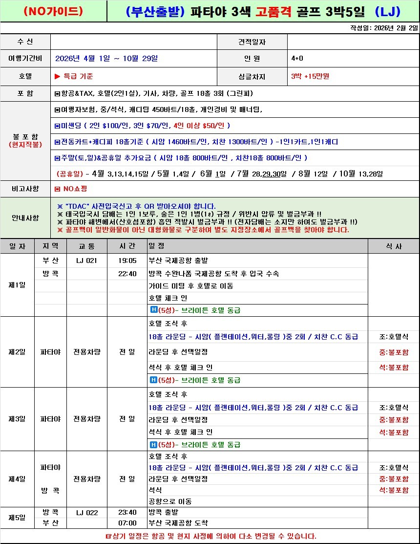 (수완나품/방콕) 2026년 05월 02일 (토)