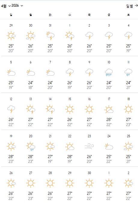| 여행기간 | 2026년 04월 26일 (일) ~ 2026년 04월 30일 (목) 4박 5일 |