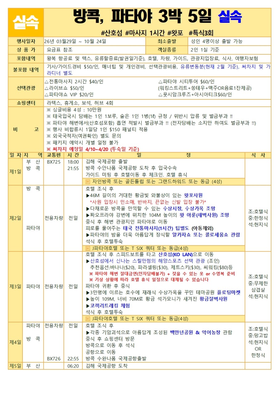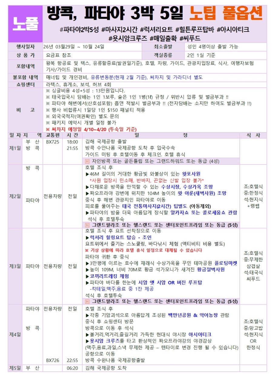 | 여행기간 | 2026년 04월 24일 (금) ~ 2026년 04월 28일 (화) 3박 5일 |