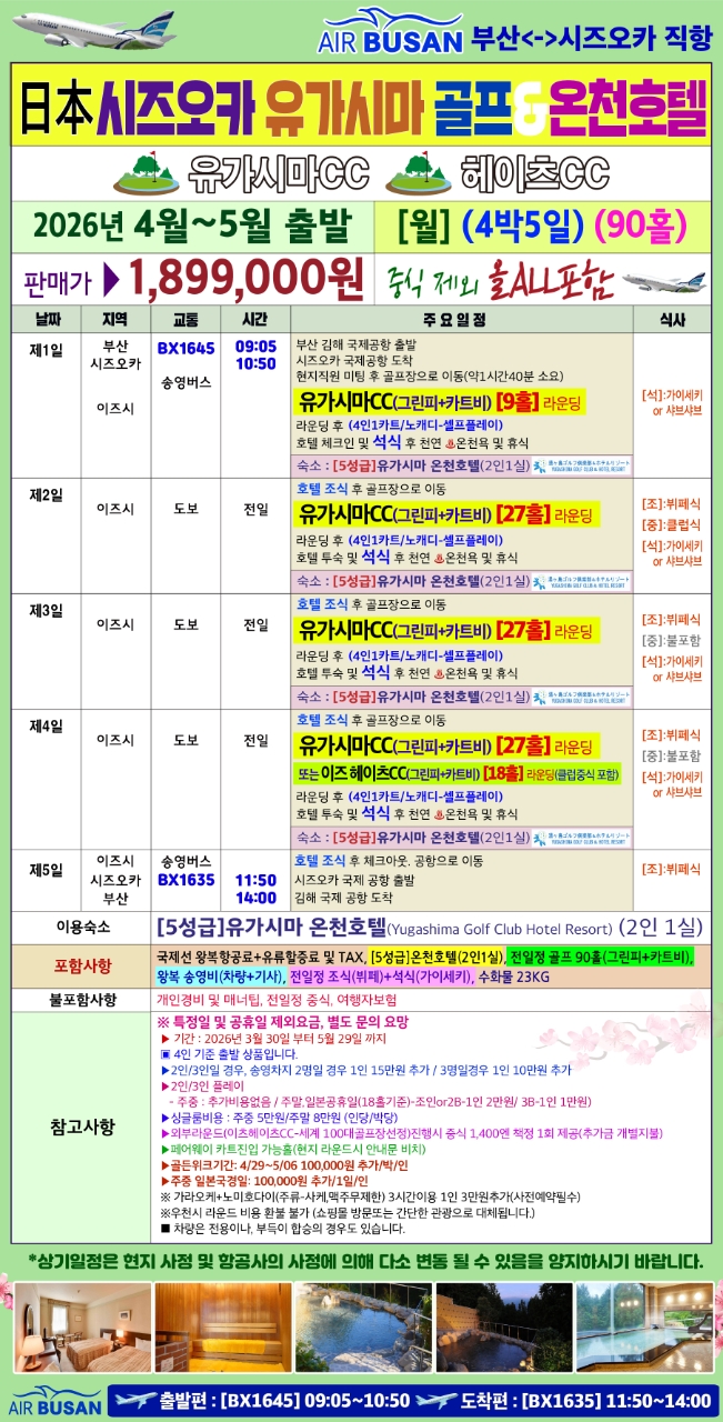| 여행기간 | 2026년 04월 24일 (금) ~ 2026년 04월 27일 (월) 3박 4일 |