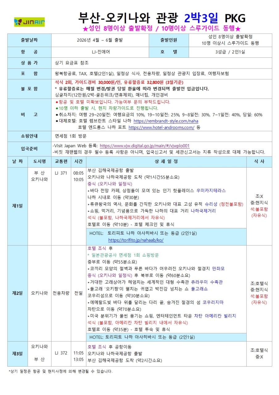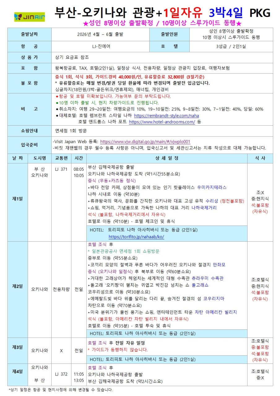 | 여행기간 | 2026년 04월 24일 (금) ~ 2026년 04월 26일 (일) 2박 3일 |