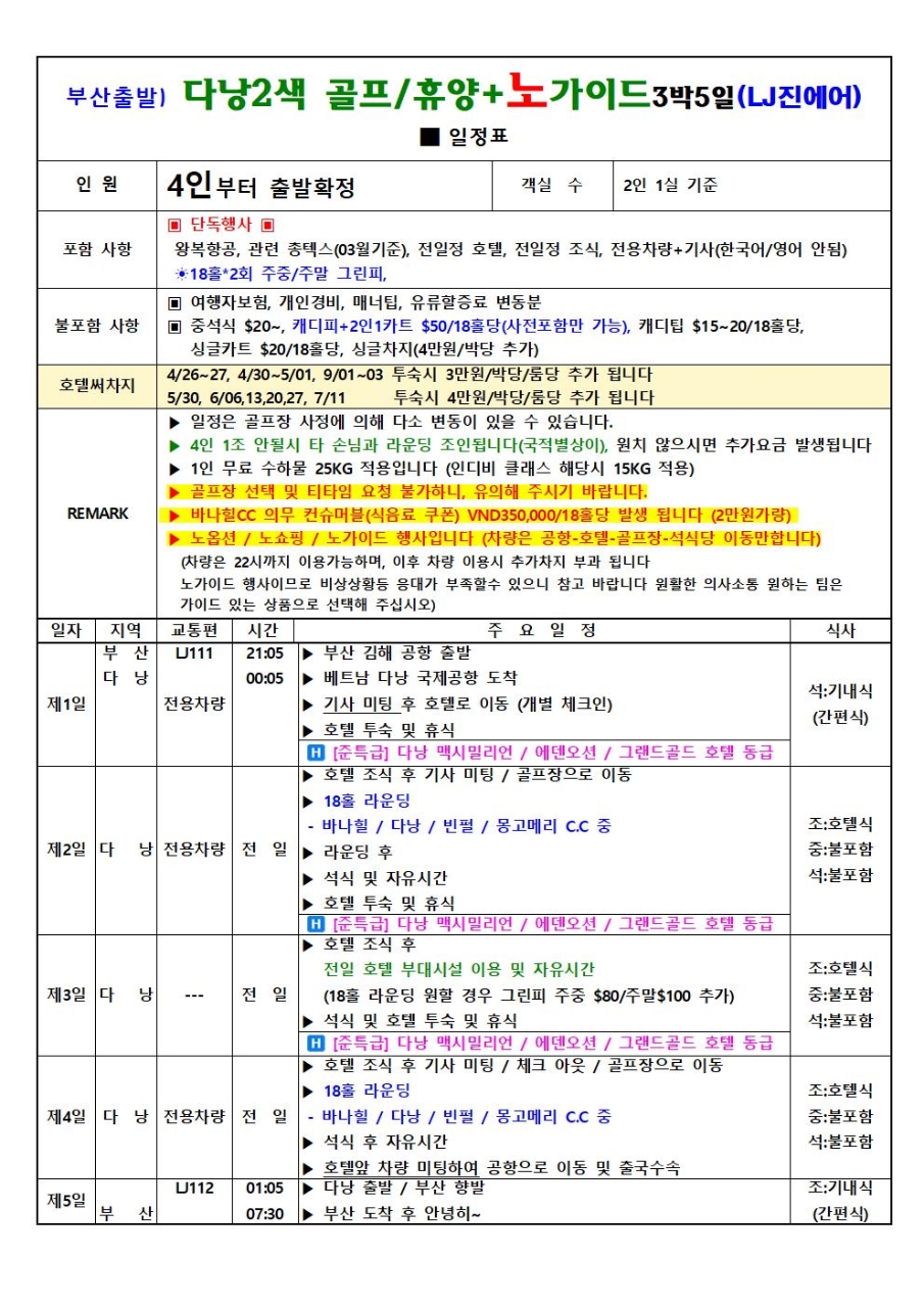 (다낭) 2026년 04월 24일 (금)