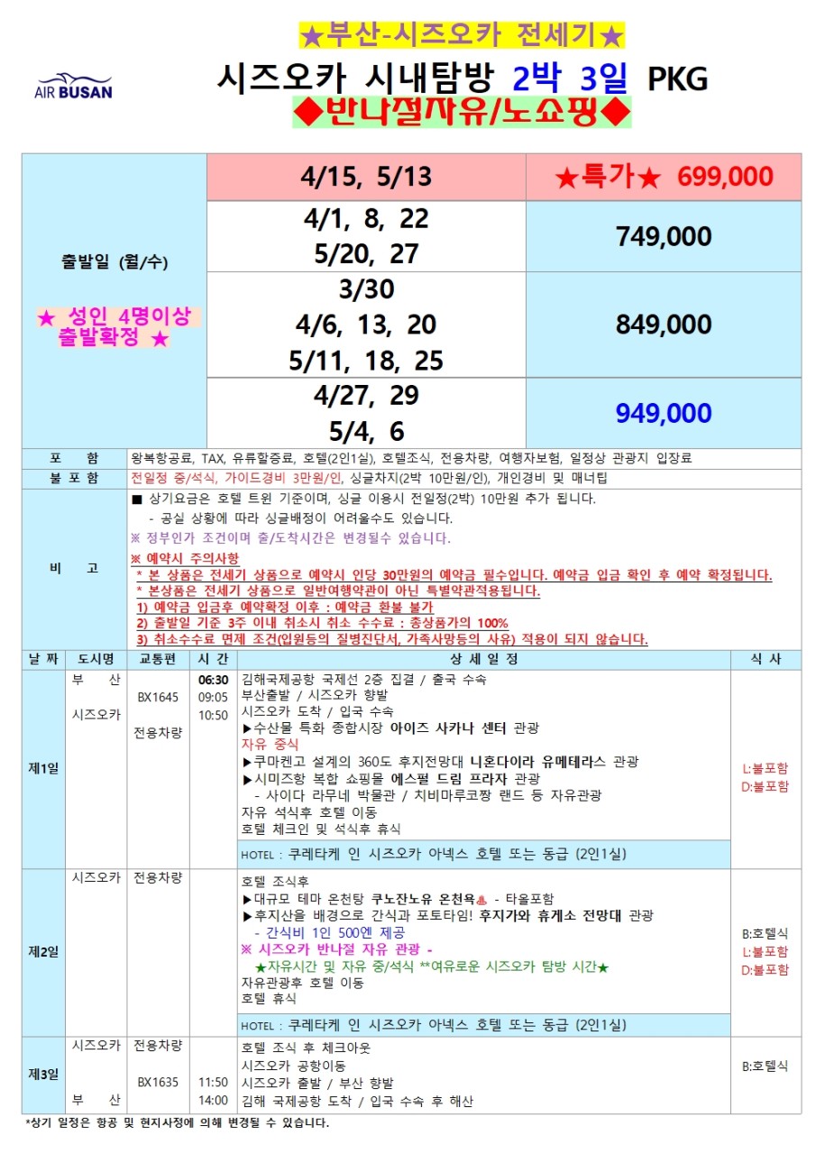 | 여행기간 | 2026년 04월 27일 (월) ~ 2026년 04월 29일 (수) 2박 3일 |