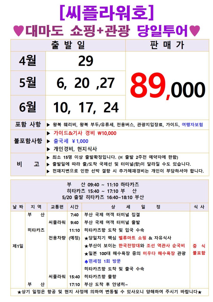 | 여행기간 | 2026년 04월 29일 (수) ~ 2026년 04월 29일 (수) 0박 1일 |