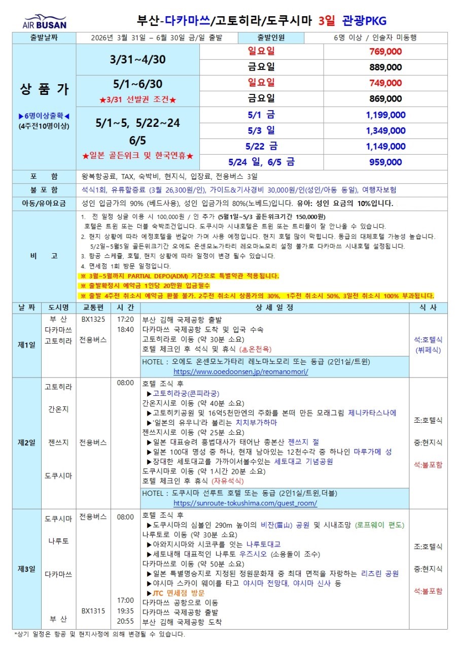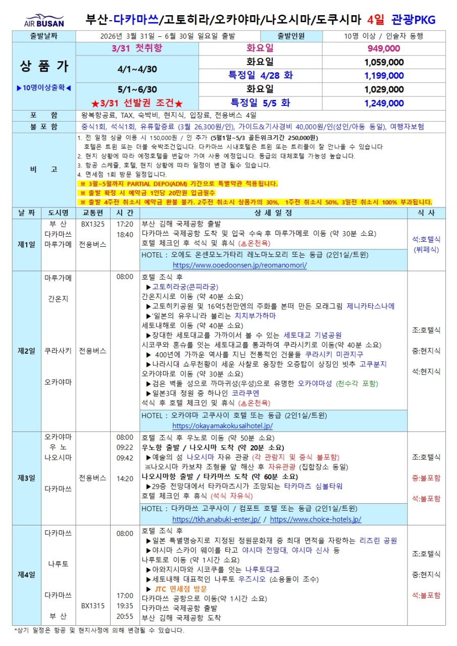| 여행기간 | 2026년 04월 24일 (금) ~ 2026년 04월 26일 (일) 2박 3일 |
