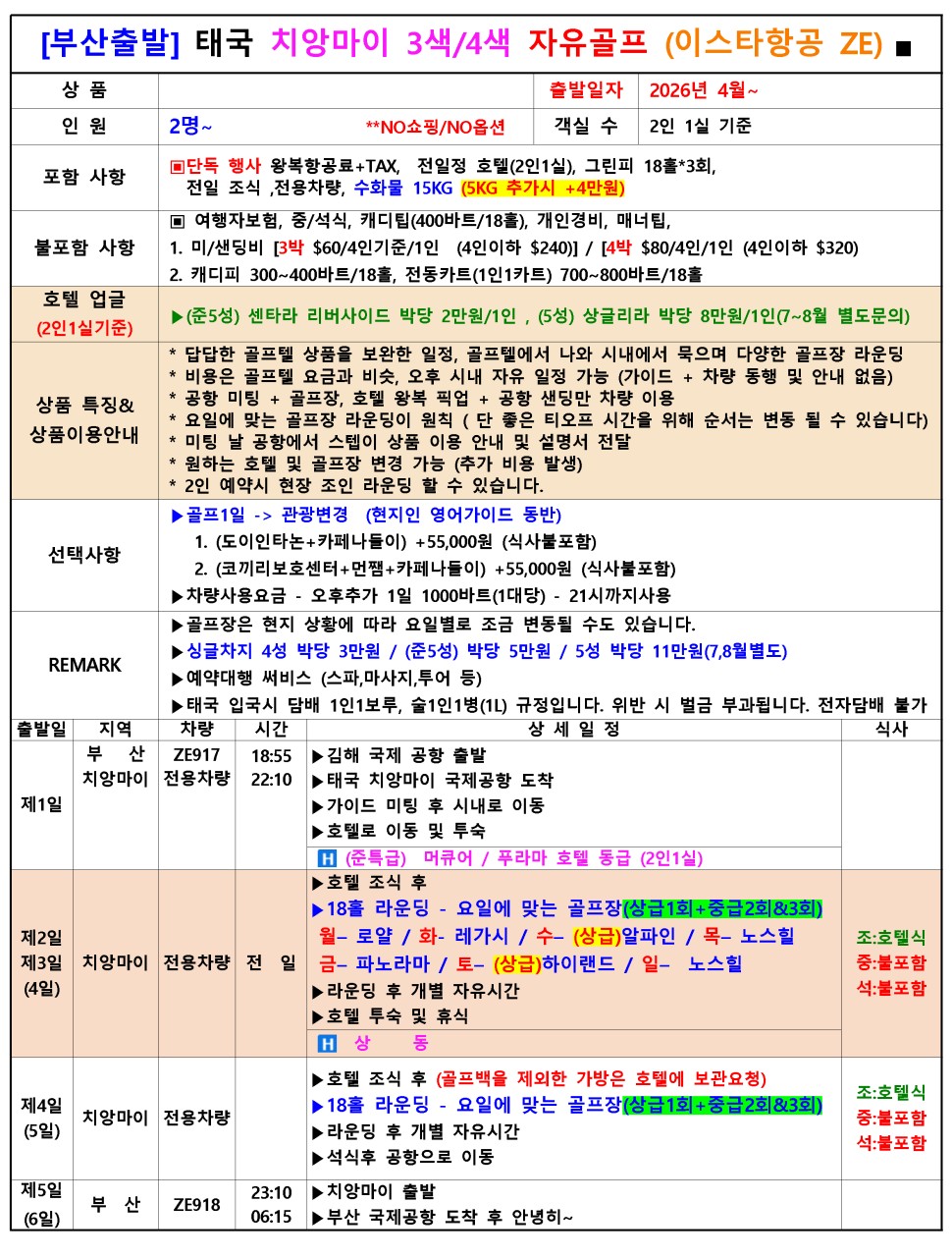 | 여행기간 | 2026년 04월 26일 (일) ~ 2026년 05월 01일 (금) 4박 6일 |