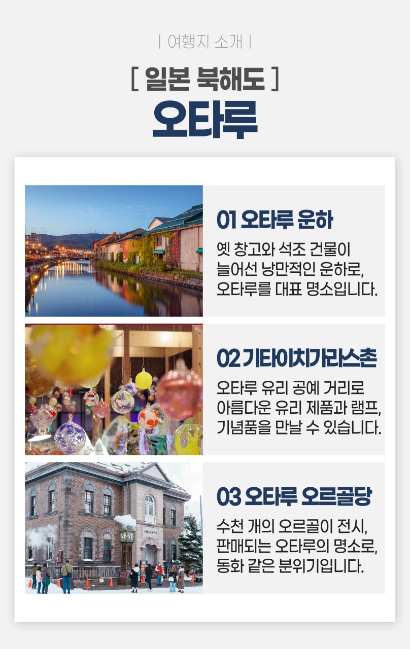 운하 바로 옆의 사카이마치 거리에서 오르골당, 유리 공방, 디저트 샵(르타오 등)을 묶어서 방문하는 코스를 추천합니다.