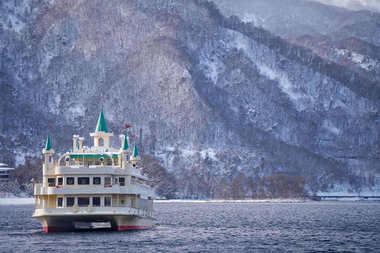 도야호수는 약 11만 년 전 거대한 화산 폭발로 형성된 **'칼데라 호수'**입니다. 둘레 약 43km의 거대한 규모를 자랑하며, 한겨울에도 얼지 않는 일본 최북단의 '부동호(不凍湖)'로 유명합니다.