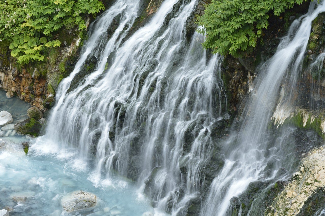 비에이 시로가네 온천 지구에 위치한 이 폭포는 일본에서도 보기 드문 **'지하수 폭포'**입니다. 바위 틈새에서 뿜어져 나오는 물줄기가 마치 노인의 하얀 수염을 닮았다고 하여 붙여진 이름입니다.