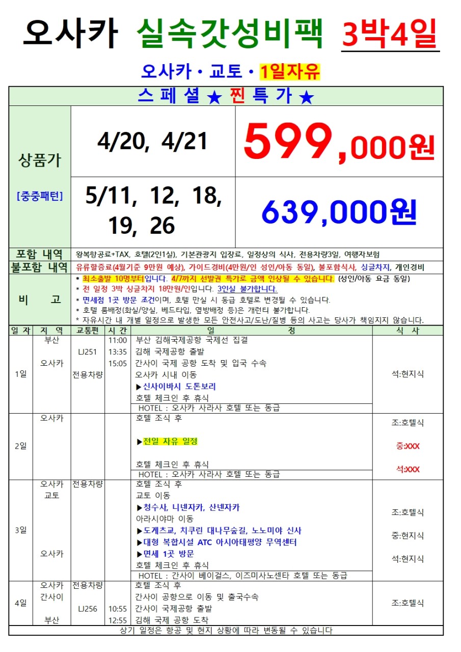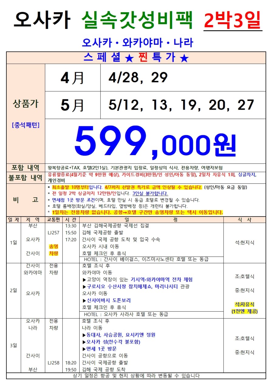 | 여행기간 | 2026년 04월 28일 (화) ~ 2026년 04월 30일 (목) 2박 3일 |