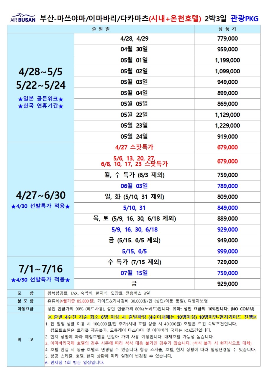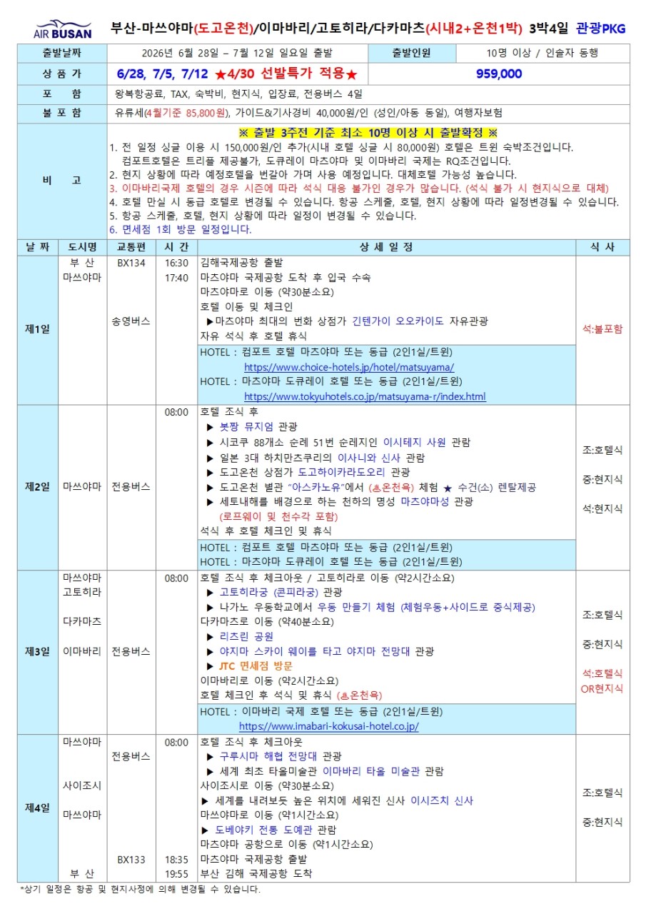 | 여행기간 | 2026년 04월 28일 (화) ~ 2026년 04월 30일 (목) 2박 3일 |