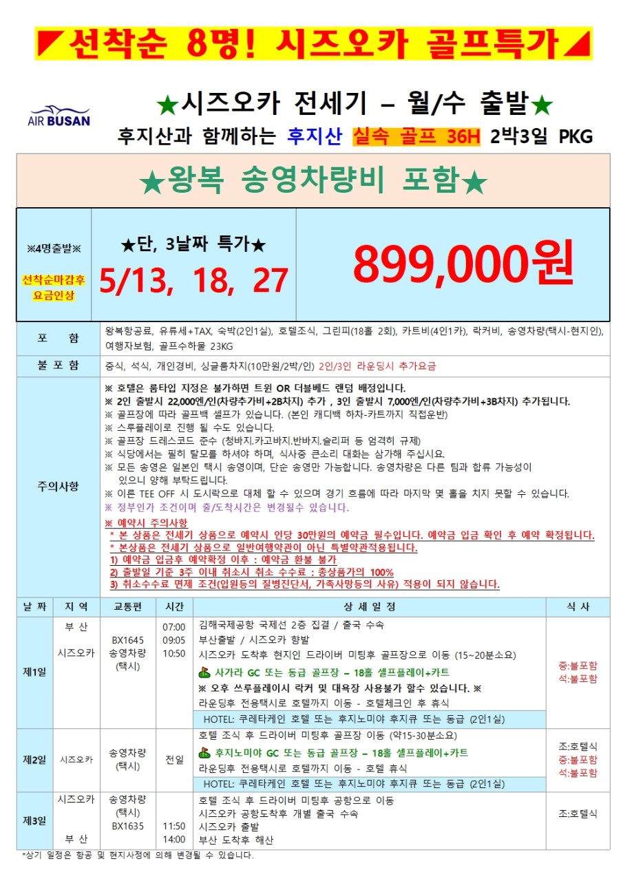 | 여행기간 | 2026년 05월 13일 (수) ~ 2026년 05월 15일 (금) 2박 3일 |